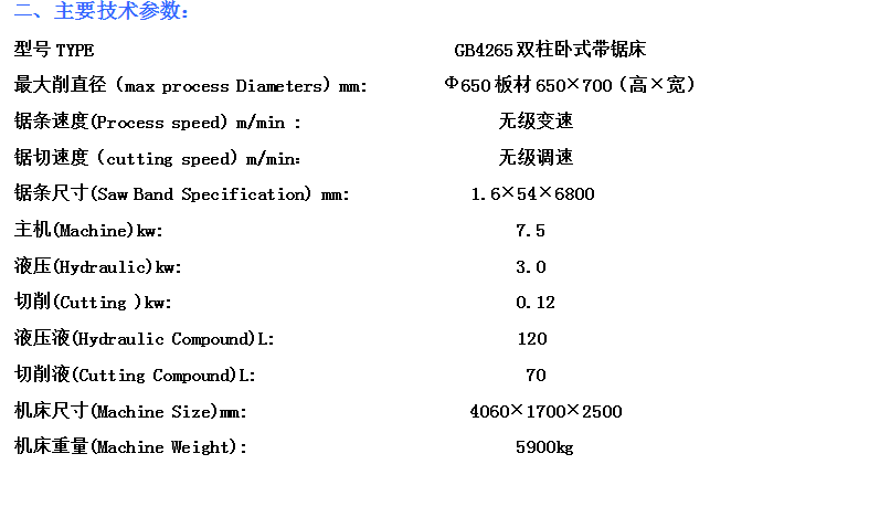 GB4265雙柱臥式帶鋸床
